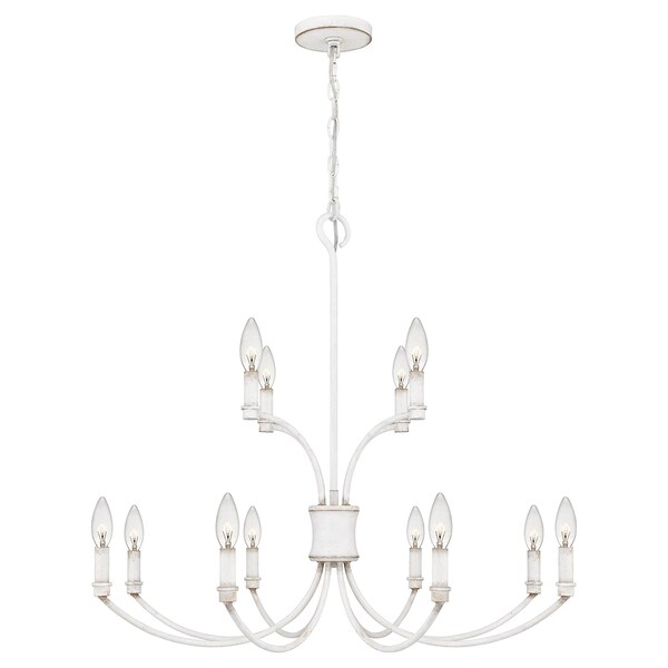 Available in antique white or matte black, the Briar chandelier brings high drama and elegance at once. Its two-tier construction creates a stylized fleur de lis shape, underscoring its subtle French Country style. Add in clear candelabra bulbs (not included) for a vintage lighting effect.