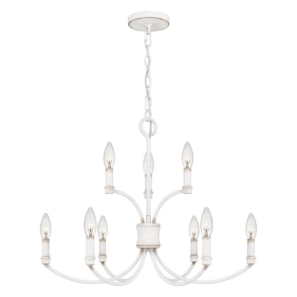 Available in antique white or matte black, the Briar chandelier brings high drama and elegance at once. Its two-tier construction creates a stylized fleur de lis shape, underscoring its subtle French Country style. Add in clear candelabra bulbs (not included) for a vintage lighting effect.