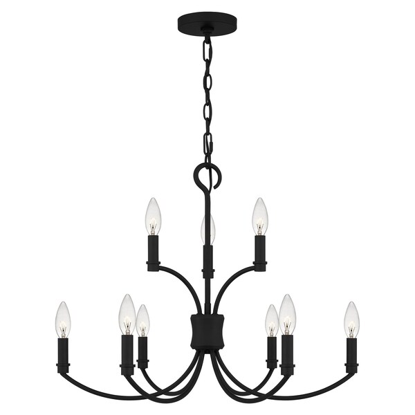 Available in antique white or matte black, the Briar chandelier brings high drama and elegance at once. Its two-tier construction creates a stylized fleur de lis shape, underscoring its subtle French Country style. Add in clear candelabra bulbs (not included) for a vintage lighting effect.