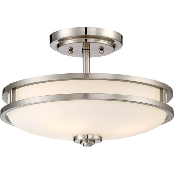 A clean design that is classic yet simple, the Cadet semi-flush mount features etched glass that diffuses the flow of light. The soft luster of the Antique Nickel finish complements it perfectly.
