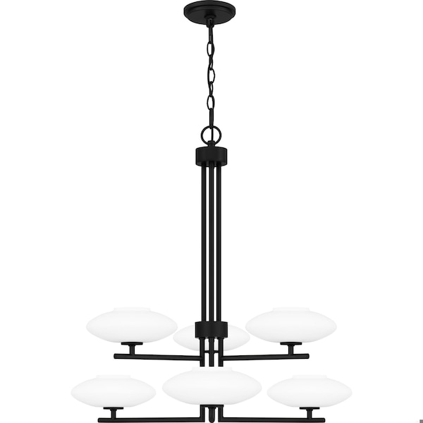 Select a finish that best suits your space with the Chenal chandelier. Aged brass creates warmth, polished chrome adds glamour, and matte black offers a grounding effect. Varying levels of milky, opal etched glass shades complete the modern look.