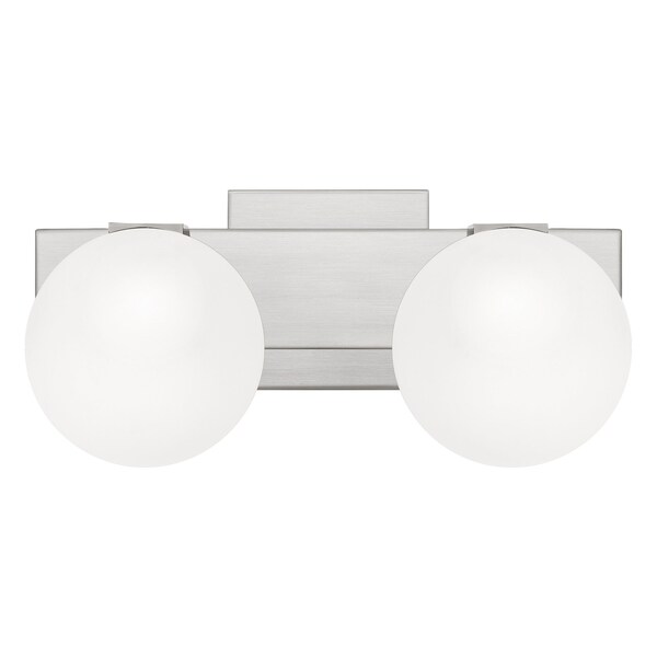 Brighten up your powderoom or bathroom with the Clements collection. This contemporary fixture features a low-profile backplate with a Brushed Nickel finish for a sleek and fresh design. The etched globe shades emit a warm glow and are threaded into place for a secure fit.