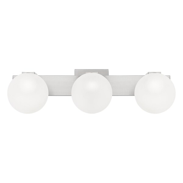 Brighten up your powderoom or bathroom with the Clements collection. This contemporary fixture features a low-profile backplate with a Brushed Nickel finish for a sleek and fresh design. The etched globe shades emit a warm glow and are threaded into place for a secure fit.