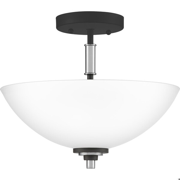 The transitional style of the Conrad collection is both sleek and modern. A stately silhouette finished in matte black and accented with brushed nickel creates the perfect amount of sophistication, and the etched glass shades add a pleasant glow to any room.