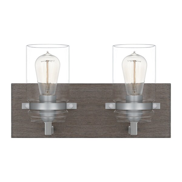 Add both farmhouse and coastal influences to your bathroom with the Craven collection. The backplate is finished in painted Aged Oak and perfectly compliments the mixed materials used throughout the fixture. The jelly jar shades are made with clear glass and held in place with metal bracelets that are both decorative and functional. This can be hung as an uplight or downlight depending on your preference.