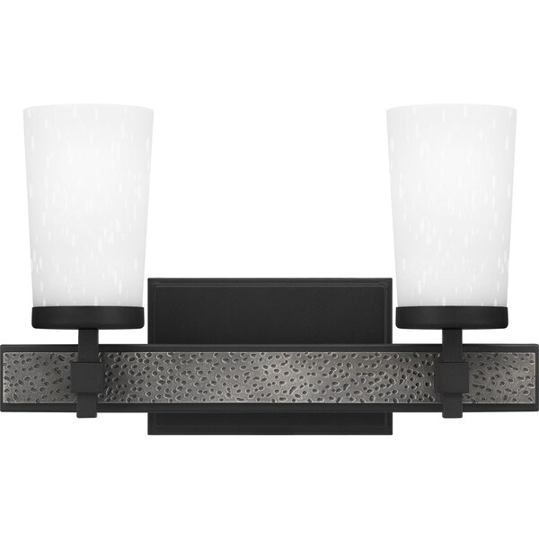 The transitional style of the Dalton collection of bath vanity lights features hints of both industrial and farmhouse design. Etched seeded glass shades sit atop a hammered metal accent bar and a sturdy rectangular backplate. A rich Earth Black finish completes the eye-catching look. Choose from a variety of options in this versatile collection to personalize your bathroom lighting today.