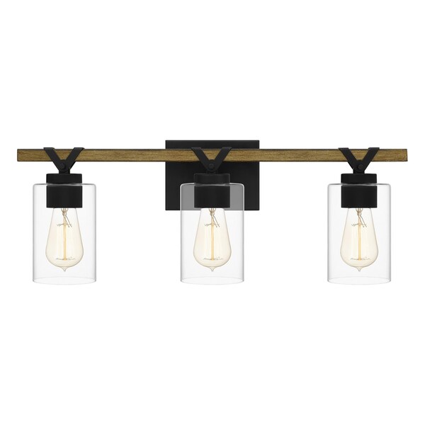 The Devon Court bath light is the perfect companion to industrial or farmhouse-inspired design schemes. This light, which can be configured facing up or down, pairs a matte black finish with a rustic wood accent. Clear glass cups — available in one-, two-, three- or four-light configurations — finish the look.