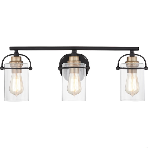 Emerson's transitional silhouette charms with unique harness-style brackets and simple clear glass shades. These bath vanity lights are available in multiple sizes and either a Brushed Nickel or a Matte Black finish. The Brushed Nickel finish boasts a classic simplicity while the Matte Black finish gives way for a more industrial feel with its use of mixed metals. Whichever option you choose, you can't go wrong with Emerson.