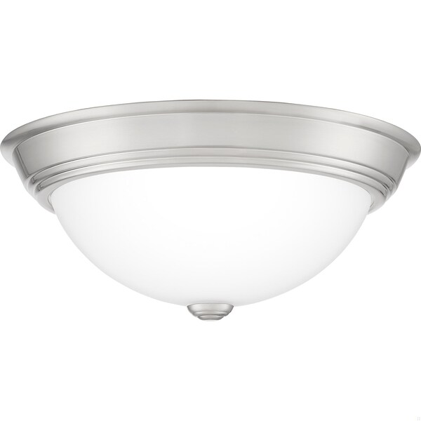 Complement any room or home décor with the classic look of the Erwin. This transitional flush mount collection comes in your choice of brushed nickel, matte black, old bronze, or white lustre finish. The opal etched glass is paired with a solid trim and matching finial to create a uniform and simplistic look.