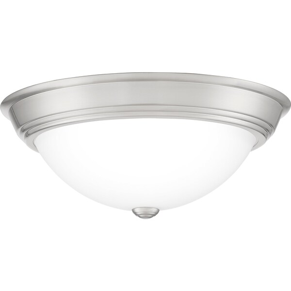 Complement any room or home décor with the classic look of the Erwin. This transitional flush mount collection comes in your choice of brushed nickel, matte black, old bronze, or white lustre finish. The opal etched glass is paired with a solid trim and matching finial to create a uniform and simplistic look.
