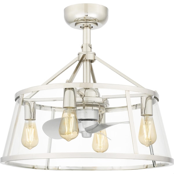 Two finishes — either polished nickel or weathered brass – allow you to customize the Barlow fan light to your space. The functionality is built right in: this unique lighting solution both illuminates and cools a room with a modern silhouette inspired in part by Art Deco design maxims. Four included clear glass bulbs maximize light.