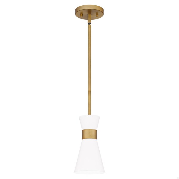 With its hourglass shape and bold metallic band, Fremont is a striking mini pendant designed to enhance contemporary design schemes. Opt for the aged brass finish to complement warm tones, or choose brushed nickel to accompany cool-toned spaces.