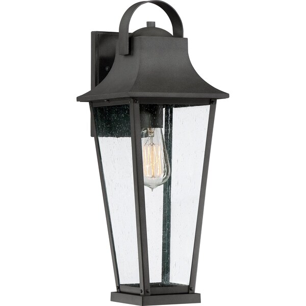 The Galveston is a beautifully crafted addition to any home. Its gently tapered frame and classic top loop add to the collection's versatility, while the mottled black finish and clear seedy glass panels showcase the beauty of the vintage filament bulb.