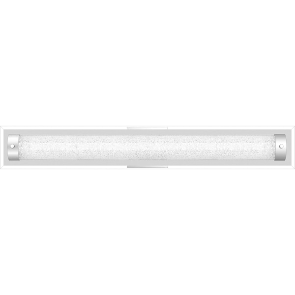 The Glitz bath bar lives up to its name. Featuring a glittering demilune mounted atop a thick panel of clear beveled glass, this whimsical charmer oozes luxury. A polished chrome backplate and endcaps complete the look.