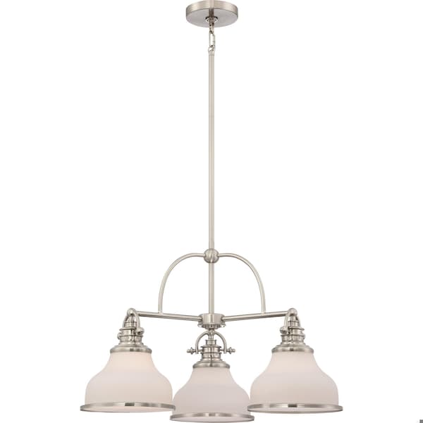 This opal etched glass fixture is an elegant nod to the past. The classic Americana styling adds a nostalgic flair to your home. When hung over a kitchen island or dinette table it provides ample lighting for all your daily tasks. It is available in Brushed Nickel , Imperial Silver and Palladian Bronze finishes.