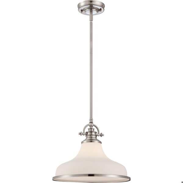 This opal etched glass fixture is an elegant nod to the past. The classic Americana styling adds a nostalgic flair to your home. When hung over a kitchen island or dinette table it provides ample lighting for all your daily tasks. It is available in Brushed Nickel , Imperial Silver and Palladian Bronze finishes.