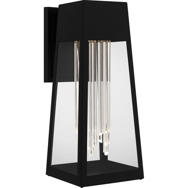 Guinn outdoor wall lanterns add a touch of contemporary luxury to your home's exterior. The sleek silhouette is finished in matte black and complemented by clear glass panels, allowing the integrated LED light source to shine brightly through the sparkling center column. Flank your front door with a pair of Guinn wall lights - or use as a porch light to create the perfect outdoor setting.
