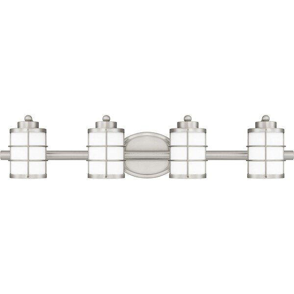 With a variety of size options and finishes to choose from, Hazlett is true perfection. Lustrous opal etched glass shades are highlighted by a sleek cage-like design, creating a soft and inviting glow. With its versatile silhouette and oval backplate, Hazlett is an ideal complement to industrtial and farmhouse bath designs. Arrange the vanity light facing upwards or downwards, depending on the unique needs of your space.