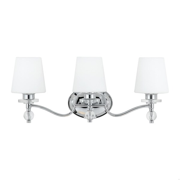 If you enjoy classic style with a contemporary edge this design will appeal to both aesthetics. The chrome finish complements the etched white glass shades perfectly. It will illuminate your bath with style and quality.