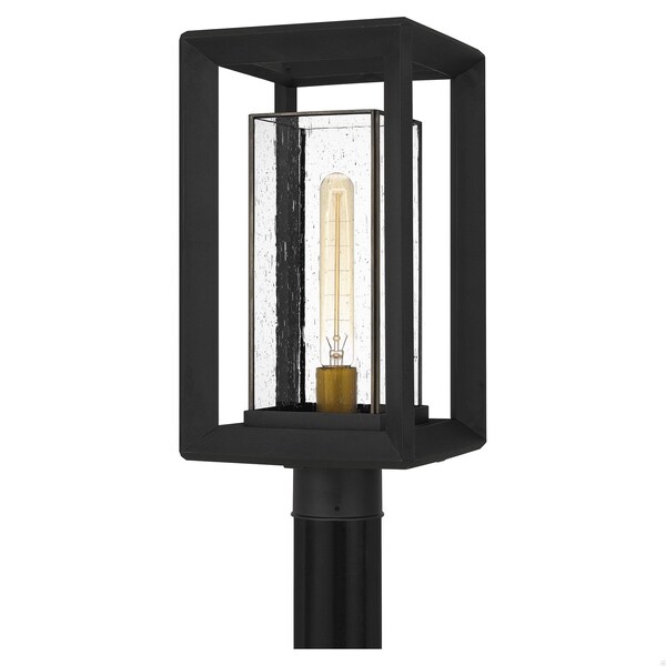 Add fresh sophistication to your home's exterior with the Infinger collection of post, wall, and hanging lanterns. Clear seeded glass shades are encased in a sturdy earth black frame to provide both style and durability. An exposed brass-colored light socket adds a touch of industrial style, making Infinger a smart choice for a variety of transitional exteriors. As part of our Coastal Armour collection, this product is durable, marine grade