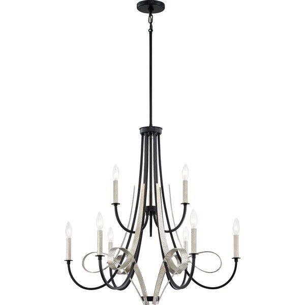 The Jada is a traditional style collection with a modern twist. This fixture is finished in Matte Black and complemented with Old Silver bobeches and ribbon-like detailing. Exposed bulbs provide ample lighting while also adding a layer of style to your home decor.