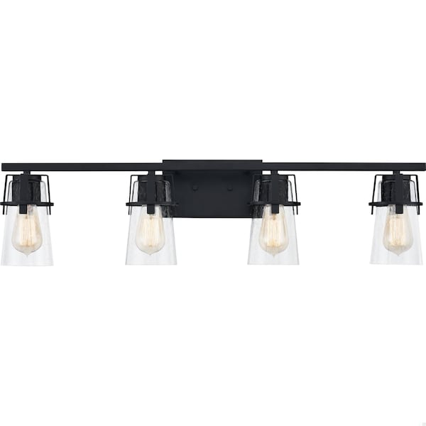 Add an industrial feel to your home with the clean lines and simple silhouette of the Knox collection. Clear seeded glass shades are accentuated by a Matte Black frame and rectangular backplate. Choose from multiple size options in this versatile collection, and add in vintage light bulbs for the ultimate ambiance.