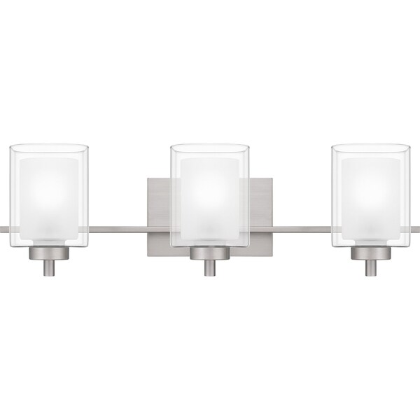 This modern posh wall sconce and vanity light collection features a simplistic design with classic finish options: choose from brushed nickel or matte black. The inner heavy glass is sand blasted inside and encased within outer clear glass shades for a sophisticated and stunning look. This unique illumination effect provides a spa-like illumination, creating a perfect home bathroom ambiance. Install Kolt with shades facing up or down to customize to your desired setting.