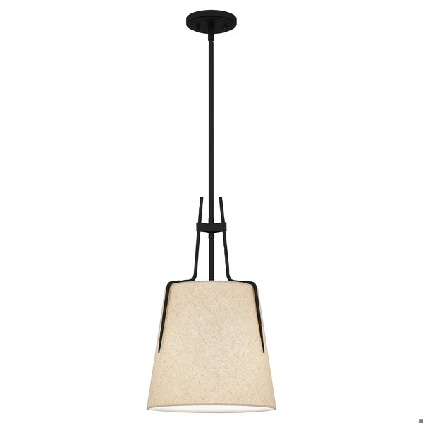 Leona’s natural linen shade adds rich texture to its striking, on-trend design. Linear iron details provide sumptuous contrast to this mini pendant or semi-flush mount, creating a tasteful addition to transitional spaces. A matte black finish rounds out Leona's transitional styling.