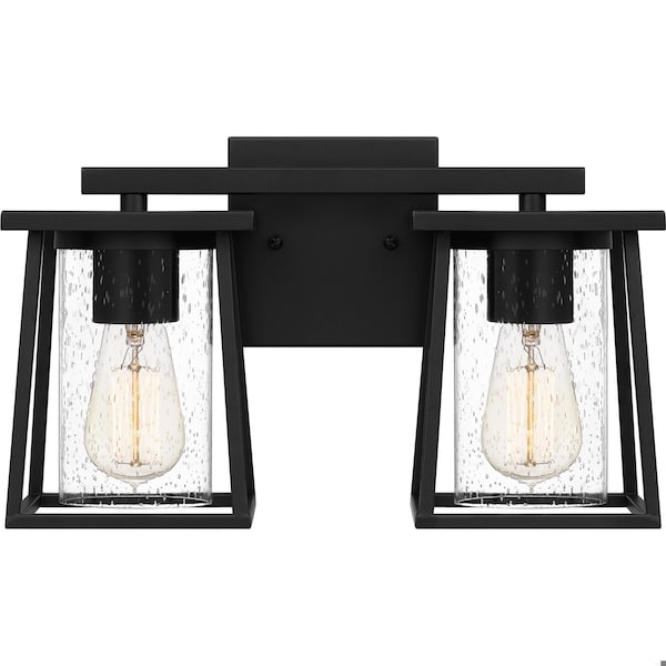 The Lodge collection offers a simplistic design with unique glass that makes a statement all on its own. Cylindrical clear seeded glass shades are showcased in a sleek, industrial styled Matte Black frame. Choose from the many size options in this collection to enhance your home bath decor.