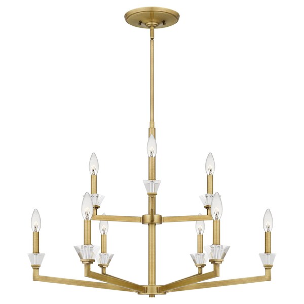 As a tiered chandelier or wall sconce, Lottie is high drama — and all glamour. Crafted with an aged brass finish and faceted gem accents, this design casts a stunning glow while refracting light. Add in clear candelabra base bulbs (not included) for a classic lighting effect.