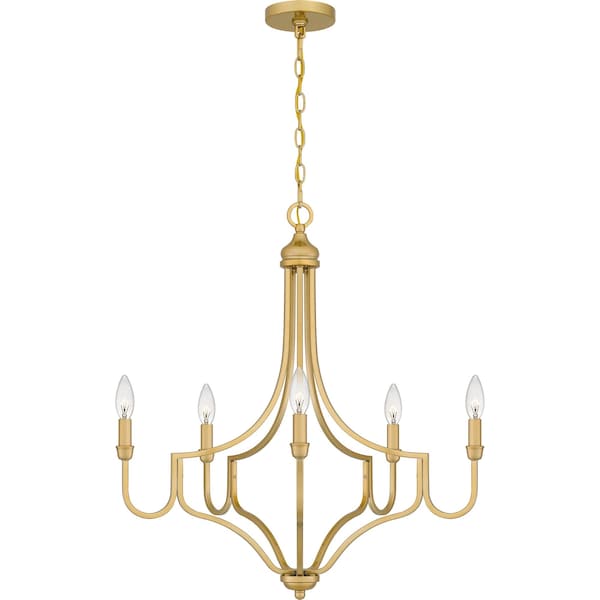 The Mabel chandelier evokes antique elegance with its shapely silhouette, including a decorative finial and chain drop. In light gold, this piece adds heirloom glamour to dining spaces or even a primary bedroom. Matte black offers a more staid, graphic interpretation.