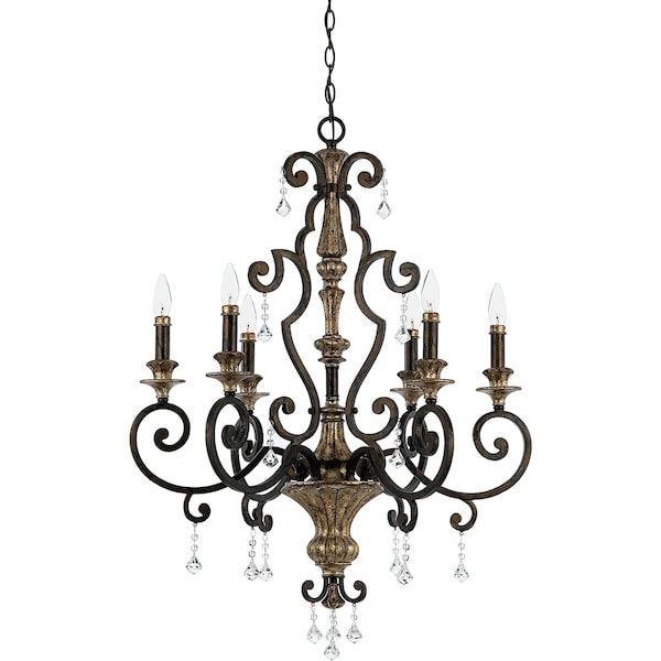 With a subtle smattering of multifaceted crystal drops this refined design is worthy of a French parlor and nearly as romantic as Paris itself. The beautiful Heirloom finish is a deep bronze with rich gold highlights.
