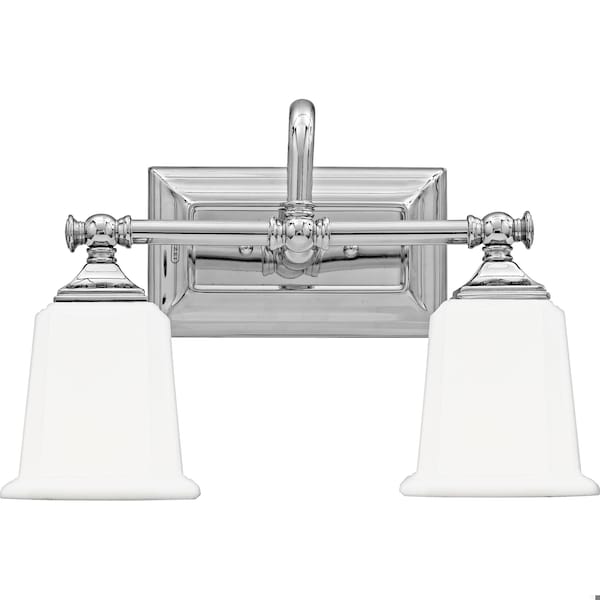 This gleaming collection gives a solid nod to mid century style. The squared shape of the opal etched glass shades gives this design an edge and it is complemented beautifully by the rectangular backplate.