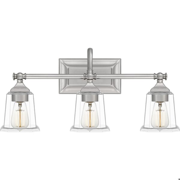 The Nicholas collection gives a solid nod to mid century style. The streamlined silhouette is finished in Brushed Nickel, Polished Chrome, or Earth Black to compliment a variety of home styles. The tapered square glass shades give this design an edge and it is complemented beautifully by the rectangular backplate. All bath fixtures can be mounted facing upward or downwards and are offered in several sizes.