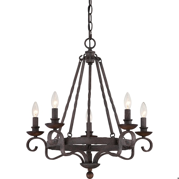 Classic and timeless Noble is a nod to European design. The speckled Rustic Black features many dark tones combined to create a roughly textured finish on the surface that highlights every mark of the hammered metal. The candelabra holders are made of solid wood and stained a dark walnut to coordinate with the overall theme of old world style and charm.