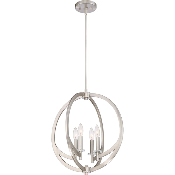 The minimal details and streamlined design make a huge impact with the Orion Collection. The planetary shape of the fixture is finished in a lustrous Brushed Nickel or Western Bronze and the crystal-clear glass candle holders accent the piece beautifully.