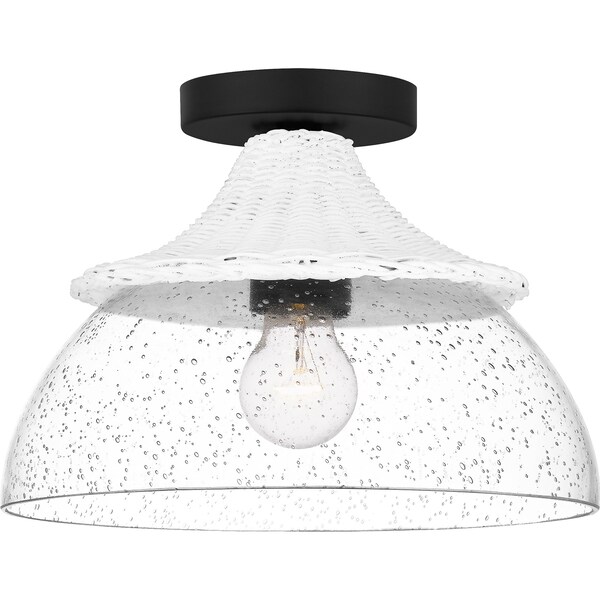 Basketweave details add country-inspired to the Otten light, available as a mini pendant, island light, or semi-flush mount. Part of the Quoizel Naturals line, Otten boasts an adaptable black and white color palette to slip into almost any space or design style. A clear glass shade allows for a decorative, Edison-style bulb for additional character and intrigue.