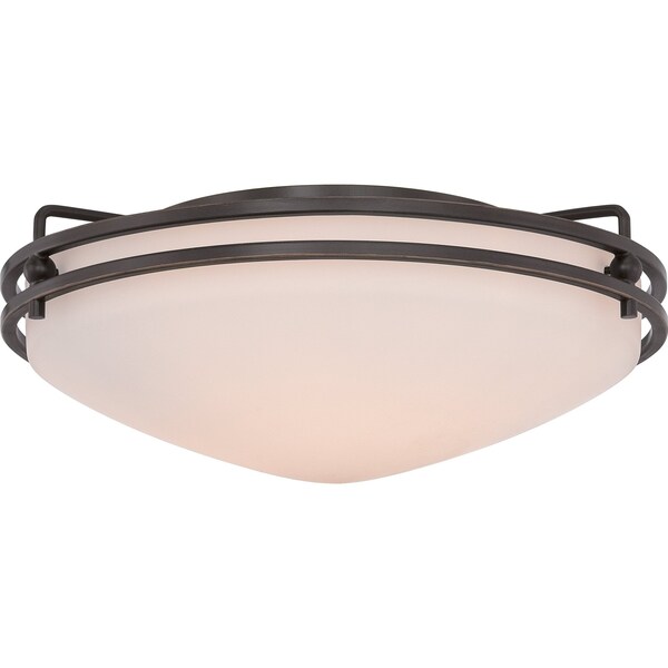This sleek ceiling mount adds a contemporary accent to your home. The simple double ring pan frames the opal etched glass which diffuses the light evenly. It brings a chic designer touch to rooms with standard ceiling heights.