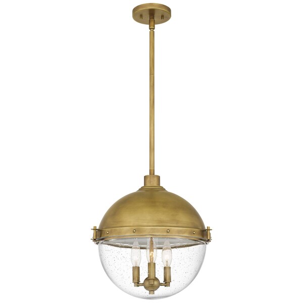 Weathered brass accents and a clear seeded glass shade come together for an antique-inspired mini pendant or semi-flush mount. The Perrine style is handsome and completely classic, casting a soft glow on a range of interior spaces. Add in vintage medium base bulbs (not included) for an added touch of style.
