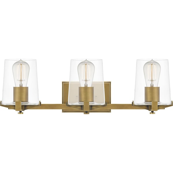 Add transitional flair to your home with Perry bath lights. Clean lines and clear glass shades create a simplistic silhouette, making Perry perfect for any industrial or modern farmhouse setting. Choose from two or three lights in either Weathered Brass or Antique Nickel or to upgrade your bathroom lighting today.