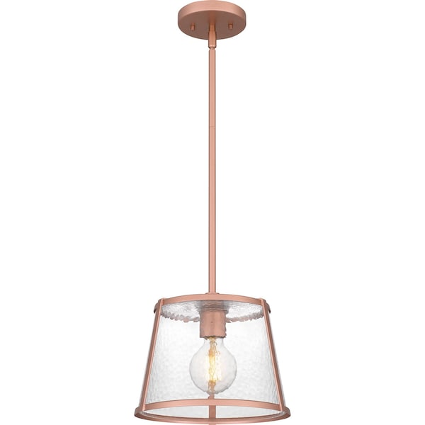 The Labrant one-light pendant illuminates timeless style with its clear hammered glass shade and classic finishes. Choose from matte black or matte rose gold to best complement your unique interior design scheme. This streamlined mid-century light would shine in bathrooms, kitchens, and living rooms alike.