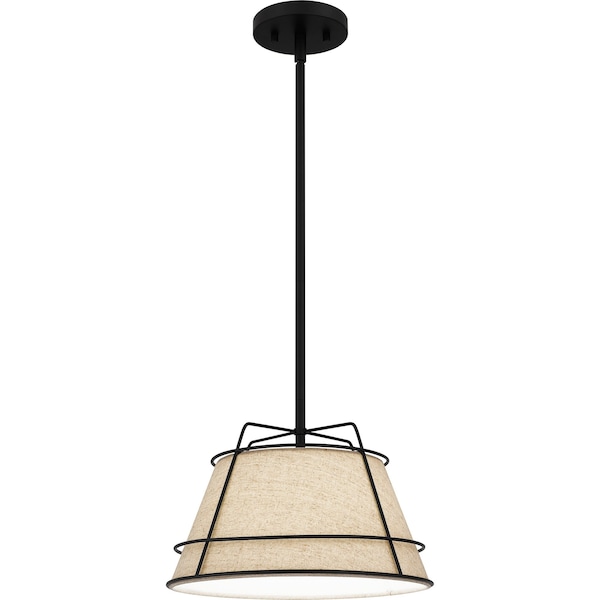 A textured fabric drum shade gives Burbridge a natural touch. Matte black framework adds visual interest with a simple, linear drop. Available as a pendant or semi-flush mount, this piece embodies a cozy yet urban aesthetic.