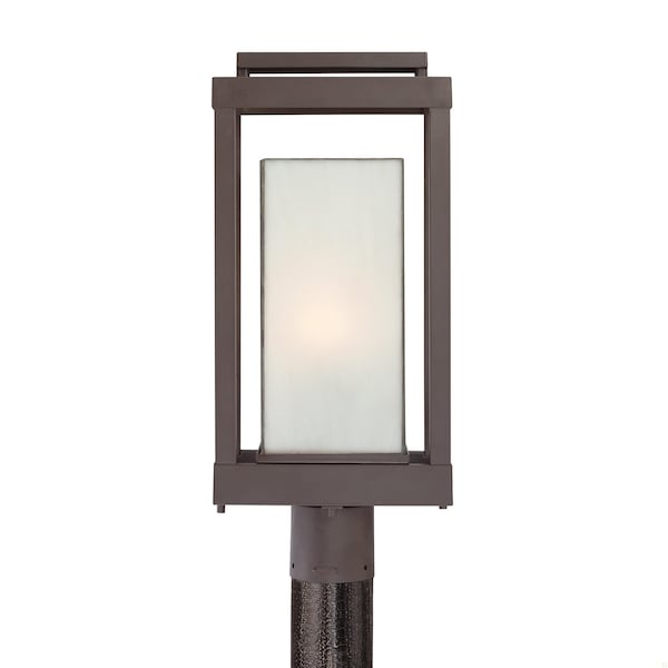 Enhance the exterior of your home with this unique and unadorned Powell collection. The shadowbox is striking in a western bronze finish and is contrasted beautifully by the rectangular white art glass.