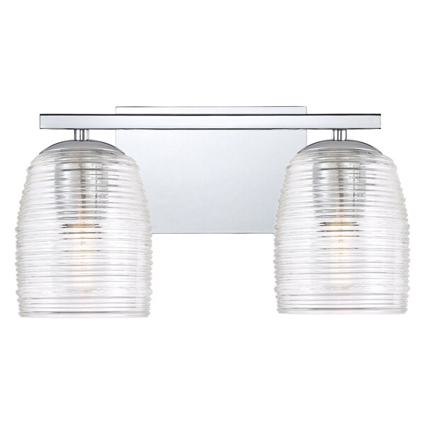 With stunning attention to detail, the Realm is a contemporary delight. The ribbed detailing on the clear spun glass shades provides texture while subtly disguising the bulbs. The support bar and backplate feature clean lines and a sleek polished chrome finish.