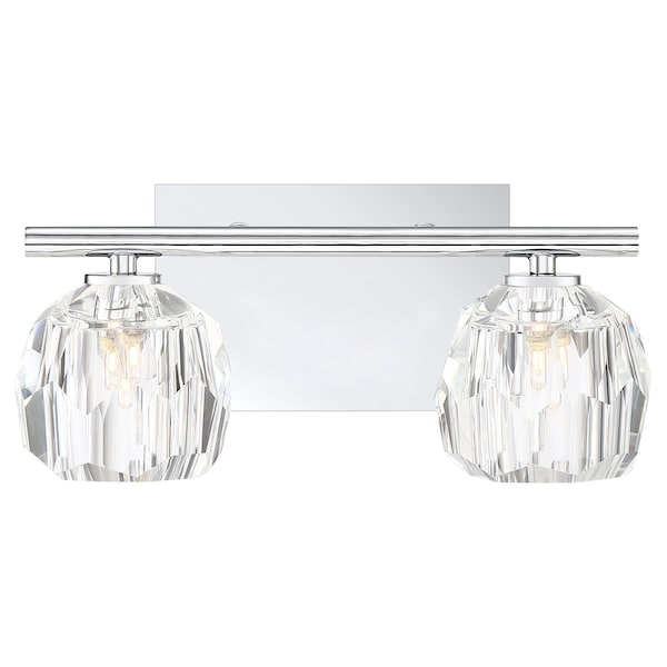 The Regalia makes a chic style statement with prismatic crystal shades that amplify the light and can be mounted up or down. An understated crossbar and rectangular backplate are finished in a sophisticated polished chrome to finish the look.