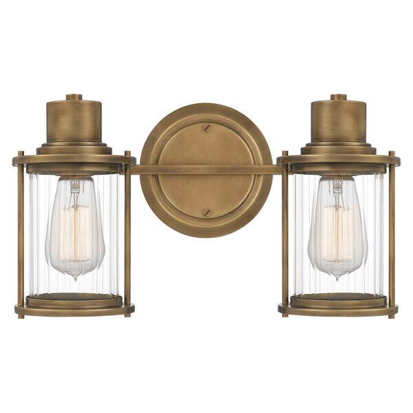 The Riggs collection gives a nod to nautical design with classic New England elements. The Weathered Brass finish compliments the silhouette which is reminiscent of vintage lanterns. The clear, ribbed glass shades provide a relaxing glow throughout your bathroom or powder room. This fixture can be hung as an uplight or downlight depending on your preference.