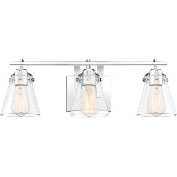 Refresh your bathroom with the clean look of the Sabine collection. This transitional style fixture comes in a Polished Chrome finish with clear glass shades that will suit a variety of bathroom decors. All Sabine bath fixtures can be