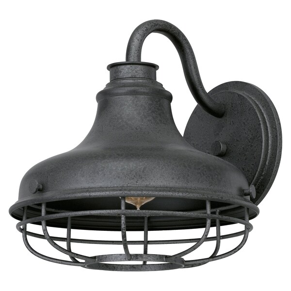 The Saluda collection combines nautical and industrial influences to create a beautiful fixture to help welcome guests into your home. The metal shade is finished in Distressed Iron and directs light downward while the wire cage protects the light source.