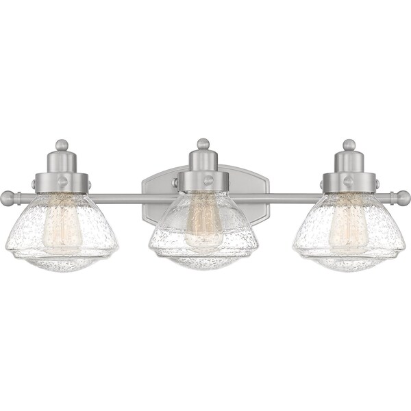 The traditional schoolhouse shape is refined and perfected with Scholar, a family that includes a semi-flush style, sconce, and vanity lighting available with one, two, or three bulbs. Clear seedy glass allows for maximum light with playful texture. Choose the palladian bronze finish to cultivate an antique look, or opt for classic and crisp brushed nickel.
