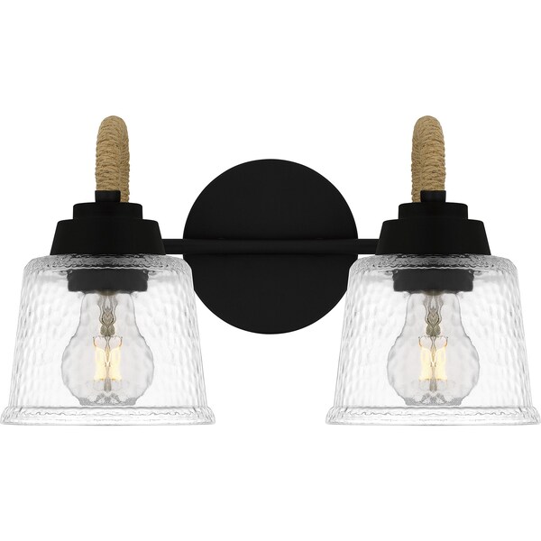 Upgrade any bathroom vanity with the addition of Seabreeze. This coastal-inspired bath light collection features clear hammered glass shades and a matte black finish. A natural looking arm takes the place of traditional metal, adding a nautical feel. Install Seabreeze with shades facing upwards or downwards, whichever best suits your unique space.
